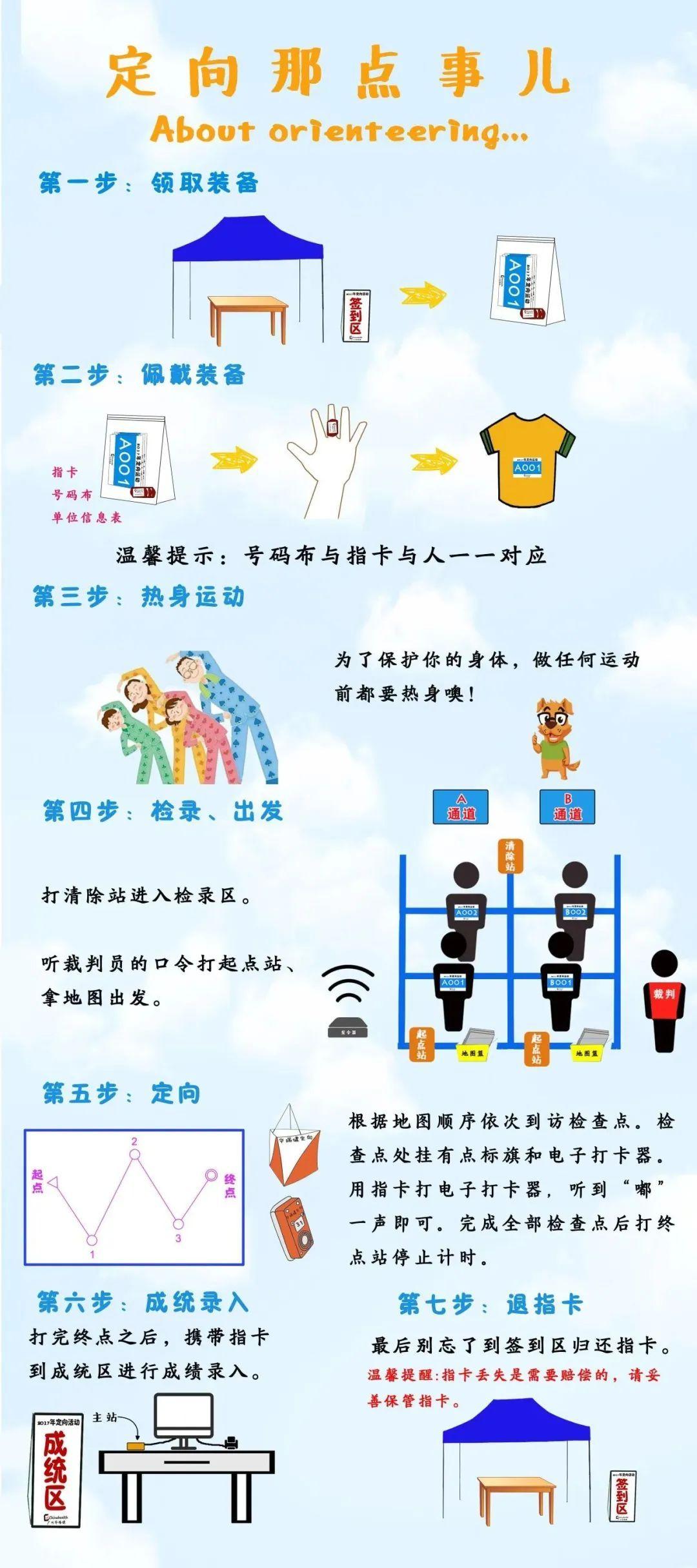 定向运动又称“定向跑”“定向越野”“识图越野”“野外定向”等,是指一种借助地图和指北针按规定方向进行的体育活动。参赛者需要借助地形图和指北针,按规定的顺序寻找地图上所指示的各个点标,以最短时间到达所有点标者为胜。