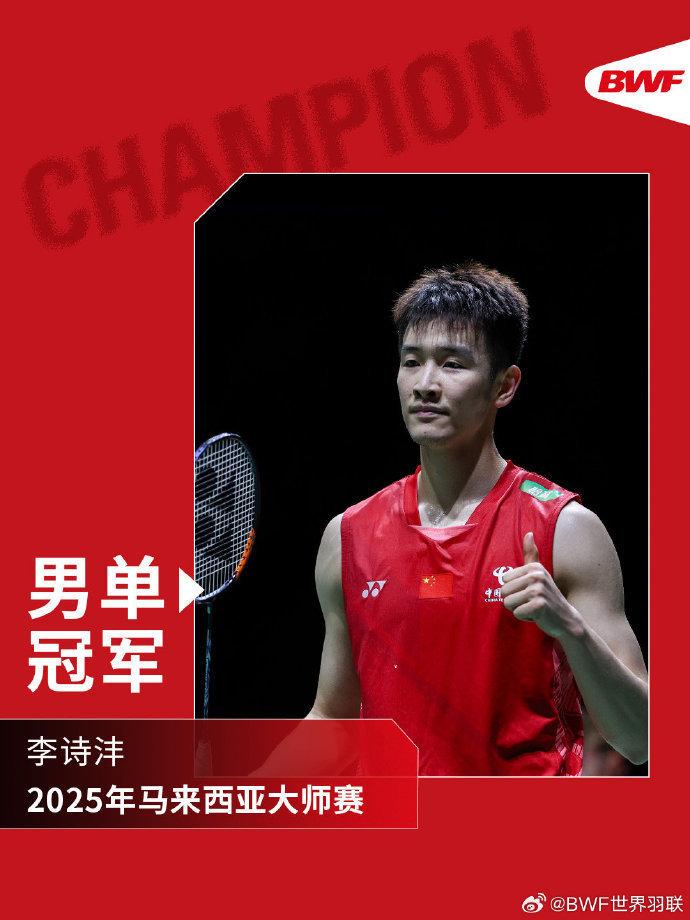 状态火热,所向披靡!恭喜李诗沣夺得2025年马来西亚大师赛男单冠军,恭喜斯里坎特获得男单亚军!
