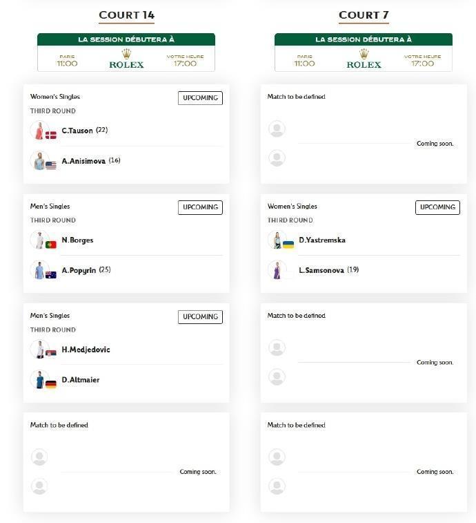 萨巴伦卡、鲍里妮、斯瓦泰克出战