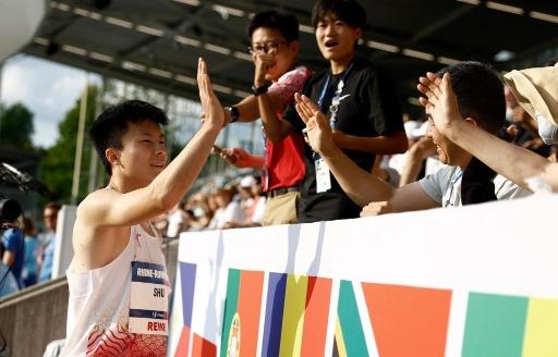 在24日进行的莱茵-鲁尔大运会男子跳远决赛中,当看到对手们相继完成最后一跳,中国队跳远选手舒衡在第六跳开始前便与教练击掌庆祝,提前锁定了他的大运会首枚金牌。
