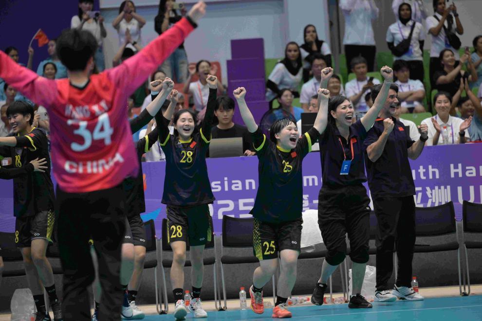 比赛战至最后十分钟时,双方打成21:21。此时中国队刘予彤攻门得手,刘亦萱又添一分,尽管韩国队顽强追回一分,但付语婕和祝一凡联手攻入关键进球,迅速遏制了对方的反扑势头。最终,中国队以28:26击败韩国队,昂首晋级决赛。
