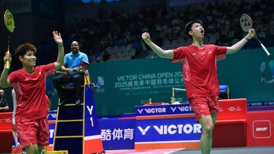 北京时间7月27日,2025中国羽毛球公开赛展开各单项决赛争夺。混双决赛中,头号种子冯彦哲/黄东萍组合2-0(23-21、21-17)击败2号种子队友蒋振邦/魏雅欣组合,夺得冠军。