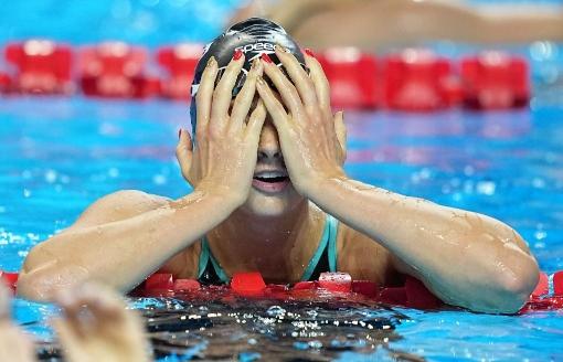 7月31日,加拿大选手麦金托什在女子200米蝶泳决赛赛后。新华社记者 薛宇舸 摄