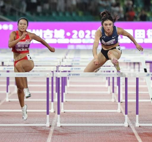 女子100米栏决赛中,广东队的刘景扬前半程势头强劲,一度处于领先位置,但是在攻第八栏时打栏摔倒,未能完赛。节奏更为平顺的四川名将吴艳妮后来居上,以13秒15的成绩率先撞线。福建队的亚运会冠军林雨薇在冲线阶段脚步踉跄,倒地摔过终点线。最终林雨薇与云南队的陈银凤成绩均为13秒29,陈银凤有效部位撞线更早,以0.003秒的优势收获亚军。