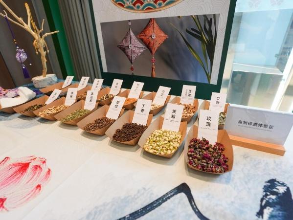 这是8月3日在成都世运会运动员村A区中医药体验馆拍摄的自制香囊体验区。新华社记者 王曦 摄
