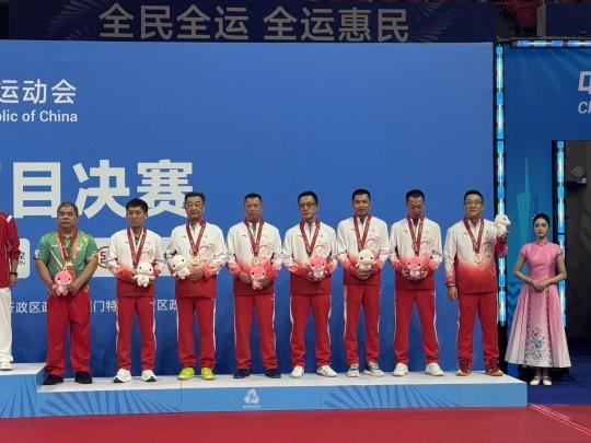 8月11日是本届比赛的首个金牌日。女团决赛于下午率先打响,北京队在先失一盘的情况下连扳三盘实现逆转,以大比分3比1战胜重庆队,首夺冠军,这也是本届全运会群众比赛乒乓球项目产生的首枚金牌。为北京队扳平大比分的杨立健赛后透露,这是自己第一次参加全运会群众比赛,“第一次站在这么大的舞台,取得如此令人骄傲的成绩,心情无比激动。金牌沉甸甸的,戴着特别开心,它的设计很特别,外观很漂亮,给人耳目一新的感觉。”53岁的她还透露,“教练赛前没有给队员们任何压力,就是让大家享受比赛,拼对手,打出自己的风格和水平就可以了。我们这个年龄能参加这么大型的体育盛会,享受比赛,做最好的自己,就已经非常开心了。”