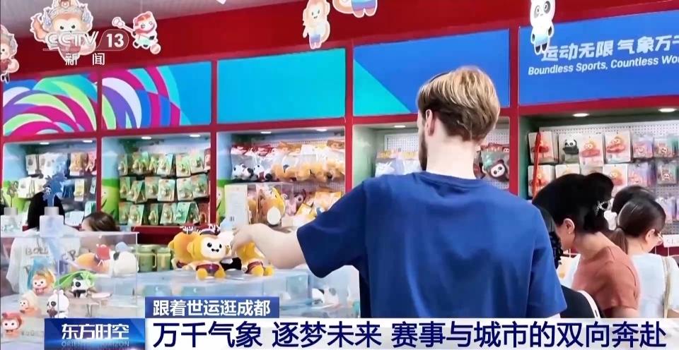 店铺中的志愿者介绍,这些限定款目前非常抢手。在世运会的竞赛场馆、运动员村以及大街小巷,随处可见赛会纪念品商店。