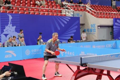 图为张耀钊比赛画面。图片来源:第十五届全国运动会群众赛事活动乒乓球竞赛委员会。