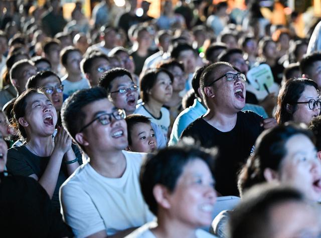 8月17日,在2025江苏省城市足球联赛第九轮比赛期间,南京市在部分商场、街区等地设置观赛“第二现场”,使用大屏幕同步直播赛事,同时设有游戏互动区、烟火市集区,让球迷们度过欢乐时光。新华社记者 季春鹏 摄