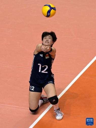 8月27日,中国队球员孙婉鋆在比赛中接球。新华社发(卢炳辉摄)