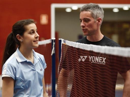 资料图:西班牙羽毛球选手马林与教练里瓦斯(右)。新华社/欧新中文