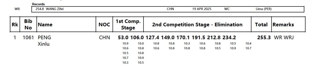 在刚刚进行的射击世界杯宁波站女子10米气步枪决赛中,中国16岁小将彭鑫露以255.3环打破世界纪录、世界青年纪录。此前254.8环的世界纪录是另一名中国小将王子菲在今年4月份的世界杯利马站上创造的。