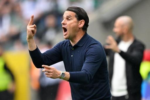 5月3日,门兴格拉德巴赫队主教练塞瓦内在场边指导。当日,在2024-2025赛季德国足球甲级联赛第32轮比赛中,门兴格拉德巴赫队主场4比4战平霍芬海姆队。新华社发(乌尔里希·胡夫纳格尔 摄)