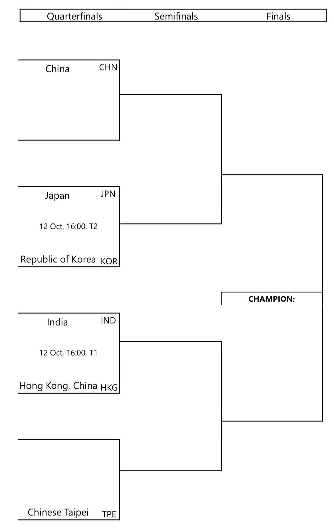 下半区:印度vs中国香港、中国台北vs小组赛晋级球队