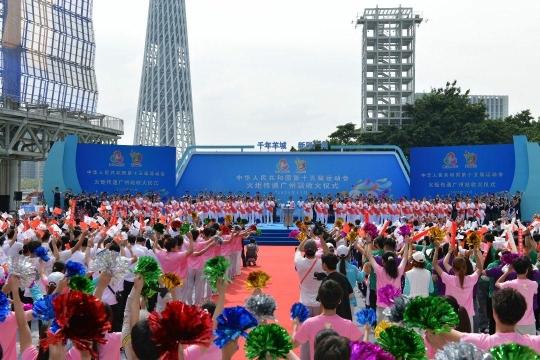 第十五届全国运动会火炬传递广州站以“千年羊城 新彩广州”为主题,从传统中轴迈向新中轴,从城市起源图腾——五羊石像到近代历史印记——海珠广场,从体育冠军摇篮——广东省二沙体育训练中心到城市客厅——海心沙中心舞台,串联历史地标与现代风貌,展开一段从古代文明到近代革命、再到现代都市的历史叙事,立体展现广州“老城市新活力”的传承与创新,彰显广州在推进中国式现代化进程中,锚定“排头兵、领头羊、火车头”标高追求,奋力开创高质量发展新局面的使命担当。