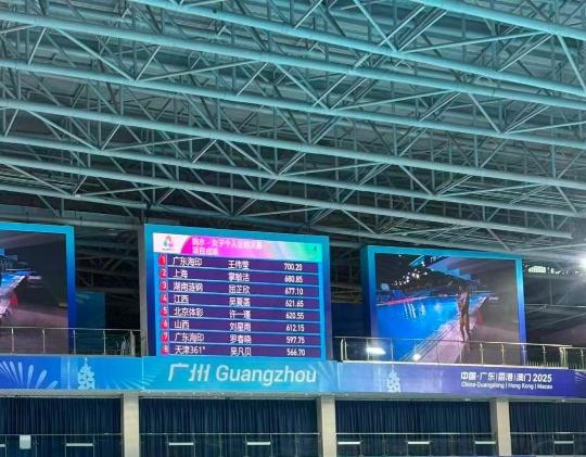 11月4日,十五运会跳水女子个人全能决赛结束,广东队的王伟莹以700.20分夺冠,十四运会该项目的亚军终于在家门口举办全运会上登顶。