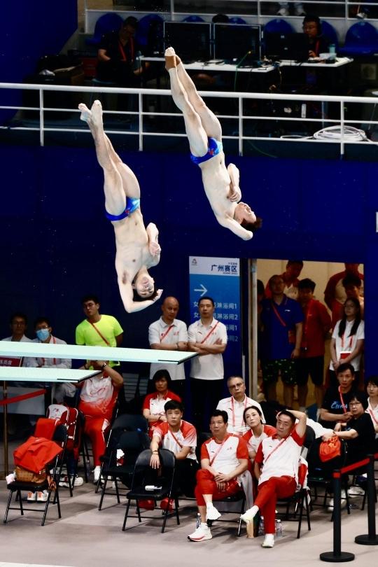 今早的女子双人10米台预赛,三对有奥运冠军的组合都顺利进入决赛,上海队的陈芋汐/掌敏洁以339.06分排名首位,广东队的全红婵/王伟莹以297.54分排名第三。
