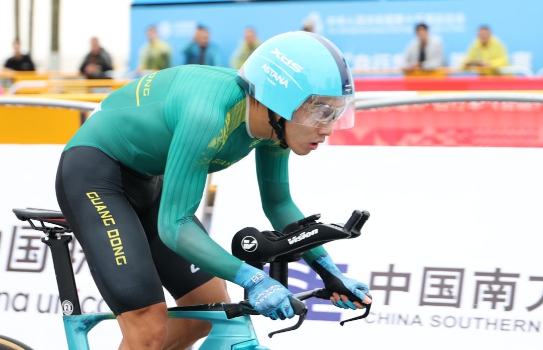 11月7日,十五运会公路自行车比赛在珠海举行,率先进行的男子个人计时赛在小雨中发车,湿滑的路面为比赛平添了变数,经过激烈角逐,山东队的苗城硕、曹厚旺分获冠军和季军,天津队的薛铭获得亚军,广东队名将苏浩钰在比赛中摔车,名列第14位。接下来,苏浩钰还将参加11月8日进行的男子个人赛争夺。