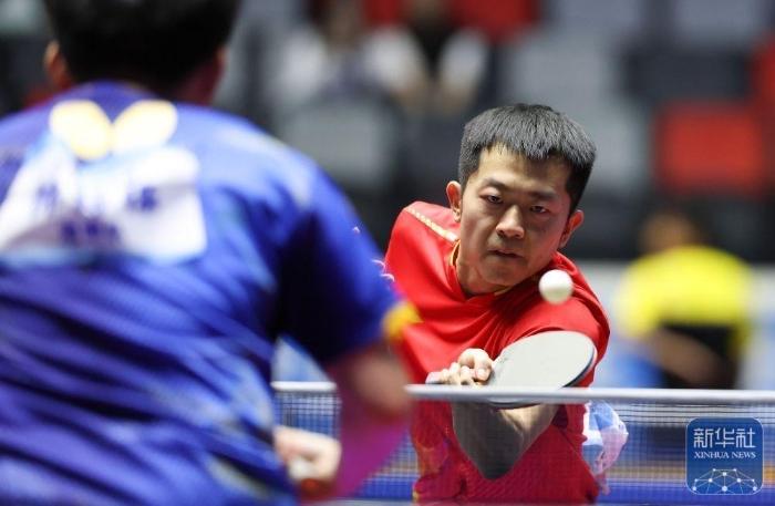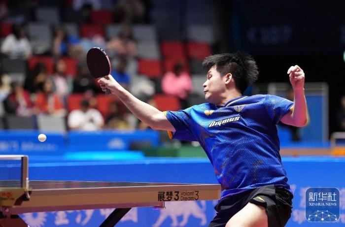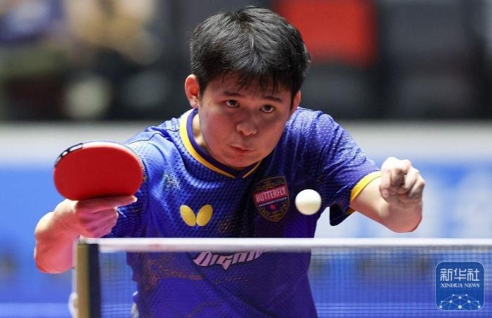↑林诗栋在比赛中回球。 新华社记者 刘续 摄