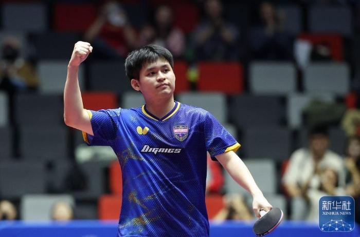 ↑林诗栋庆祝比赛胜利。 新华社记者 梁旭 摄