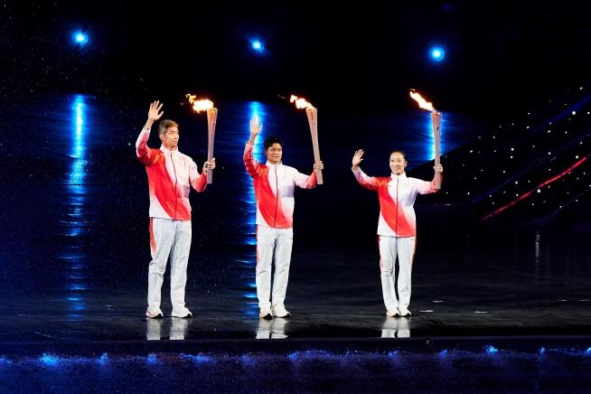 苏炳添担任十五运会开幕式火炬手,点燃主火炬。