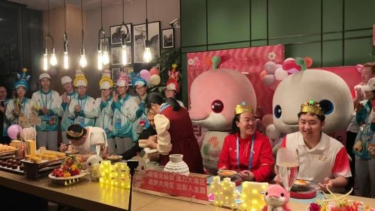 “生日快乐!”在赛区接待人员、驻地保障人员、志愿者和媒体们的祝福声中,来自不同地市代表队的残特奥会运动员在赛事接待酒店越秀源宿酒店,参加了一个难忘的集体生日会。