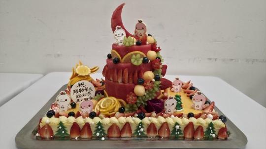 越秀源宿酒店特意给“寿星”准备了一份富有岭南特色的长寿面,内容“简约而不简单”。负责此次生日会食材的大厨吕继峰介绍说:“这份长寿面采用了闽南鸡蛋面,每一根都代表‘事事顺心’;面里打了一个用土鸡蛋制作的荷包蛋,寓意‘想啥有啥’,面汤采用了鸡骨头熬制的清汤。蛋糕也有讲究,上面摆了一些可爱的吉祥物,用水果和芝士制作的蛋糕口感细腻,不是很甜,比较健康,希望运动员们吃得开心!”