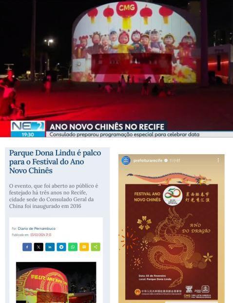 巴西《论坛》杂志、《伯南布哥州日报》《伯南布哥州页报》、累西腓电视台TV NOVA等多家当地主流媒体以及累西腓市政府官方网页,均对活动予以报道,巴西环球电视台就活动进行了现场直播,相关报道覆盖巴西全境近2亿人。