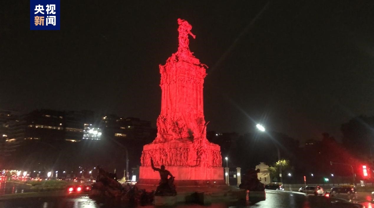 当地时间2月9日,为庆祝中国农历新年,阿根廷首都布宜诺斯艾利斯8处地标性建筑同时点亮“中国红”,吸引众多当地民众驻足关注。
