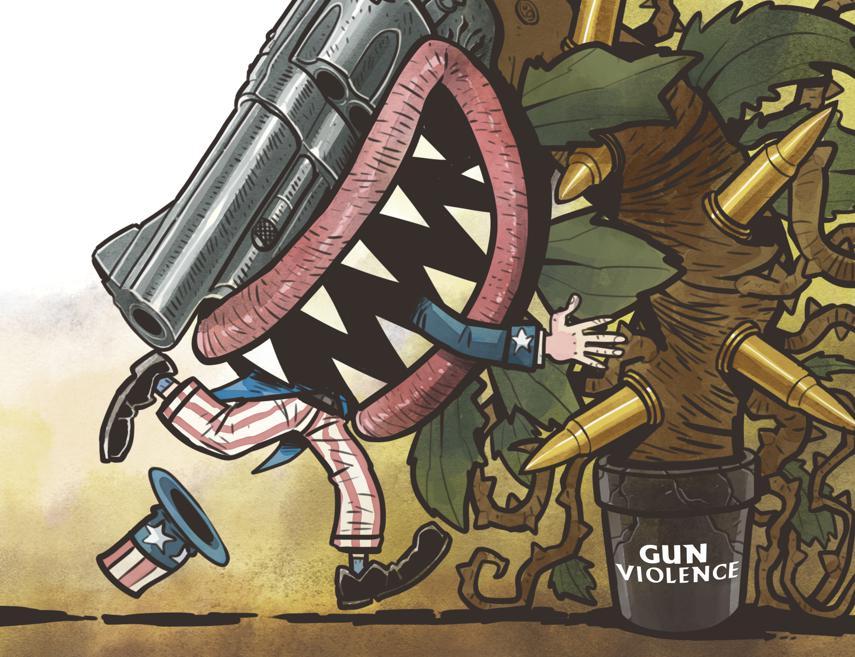 过于频繁的枪支暴力事件已经将美国社会吞没。(来源:中国日报 作者:蔡艨)