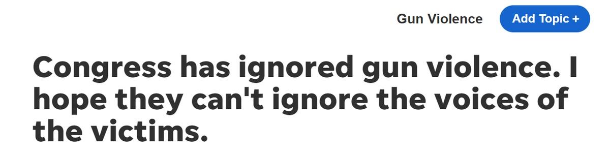 更为不幸的是,美国国会始终未能保护民众免于遭受这种恐怖经历,他们对此选择无视,无视美国的枪支暴力顽疾。