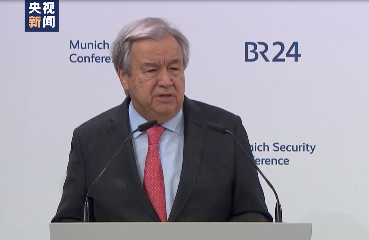 2月16日,联合国秘书长古特雷斯在慕安会上发表开幕致辞