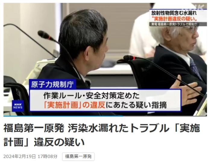 据日本广播协会(NHK)报道,2月19日,针对福岛第一核电站核污水泄漏事故,日本原子能规制委员会批东京电力公司违反规定。