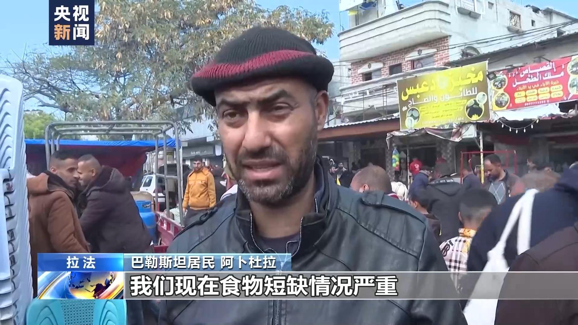巴勒斯坦居民 阿卜杜拉:我们现在食物短缺情况严重,集市上没有牛肉、鸡肉或鱼类,只有豆类。5个月来,我们一直在忍受,这里没有盐和糖,一切生活必需品都很匮乏。