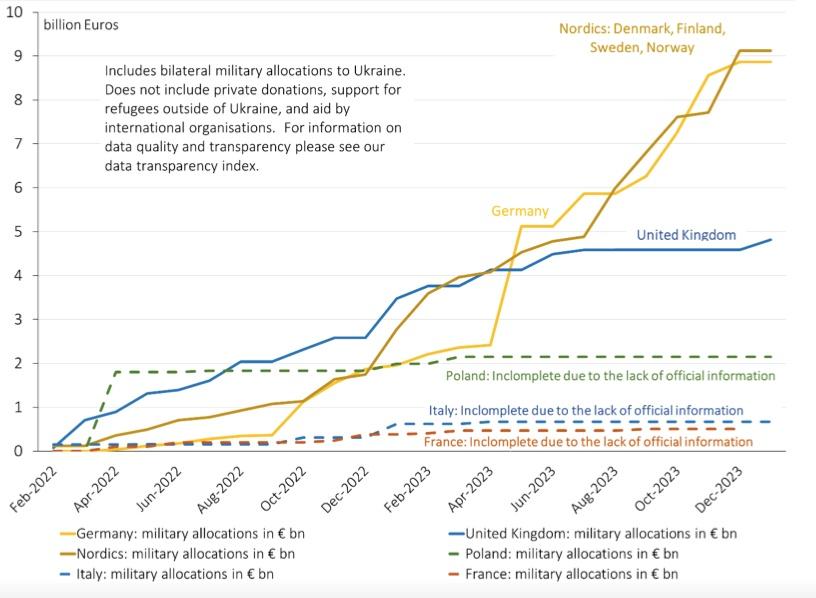 △欧洲国家对乌军援图表(图片来源:基尔世界经济研究所)
