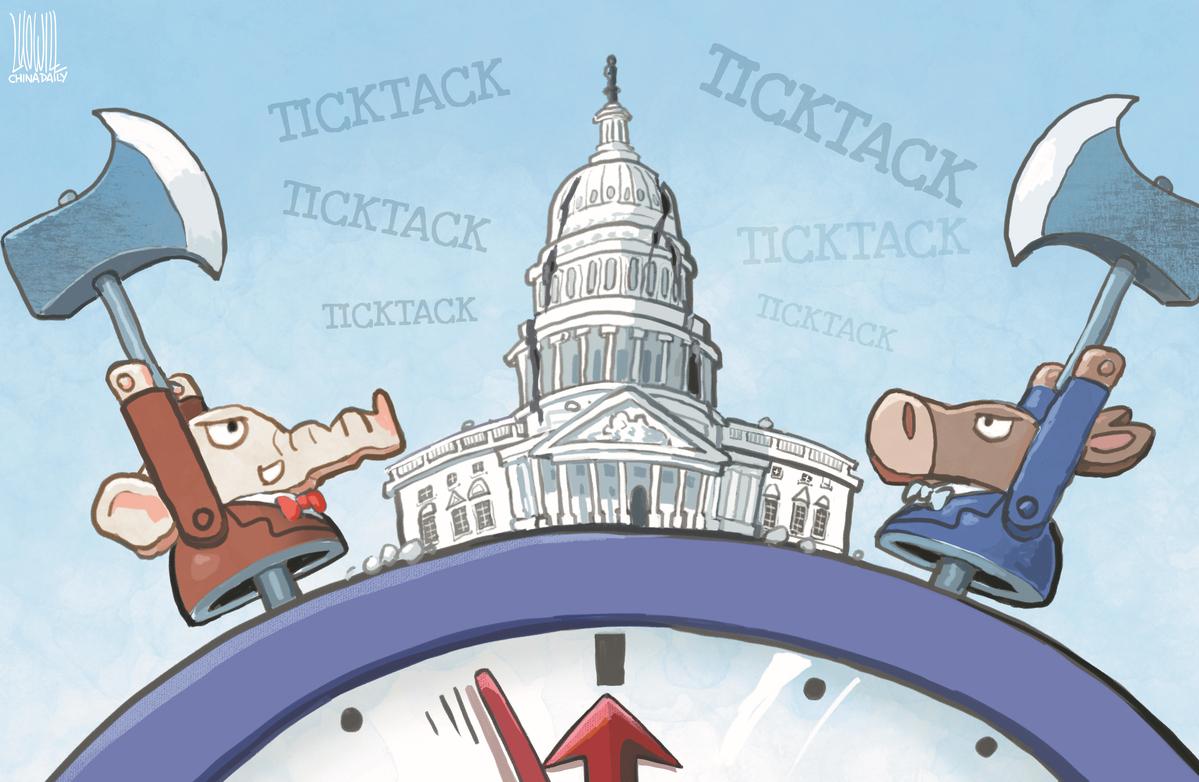 两党临时协议眼看就要到期,两党分歧闹剧又将爆发。(来源:中国日报 作者:罗杰)