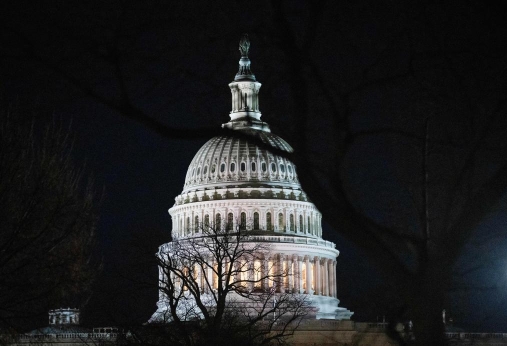 这是2月13日在美国首都华盛顿拍摄的国会大厦。新华社记者刘杰摄