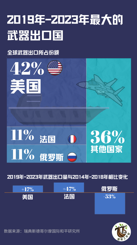 斯德哥尔摩国际和平研究所在声明中提到,美国“以前所未有的规模”向更多国家和地区出口了更多武器,“增强了它作为武器供应国的全球地位——这是它对外政策的一大重点”。