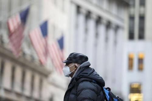 1月19日,一名男子戴着口罩走在美国纽约曼哈顿街头。新华社记者王迎摄