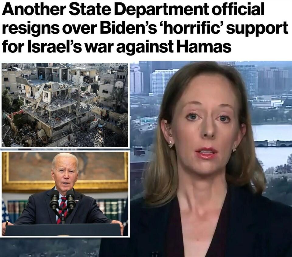 她也是本轮巴以冲突爆发后,美国国务院辞职的第二位官员。