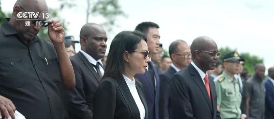 中国驻坦桑尼亚大使陈明健和坦桑尼亚工程和交通部长姆巴拉瓦走上公墓石阶,整理挽联、鞠躬致敬,全体人员默哀并三鞠躬,缅怀长眠于此的中国援建坦赞铁路和其他援坦项目的专家。