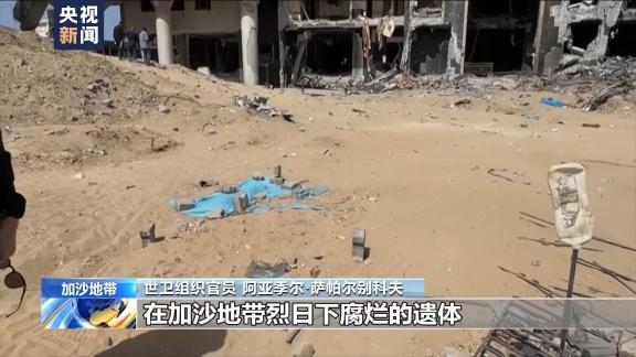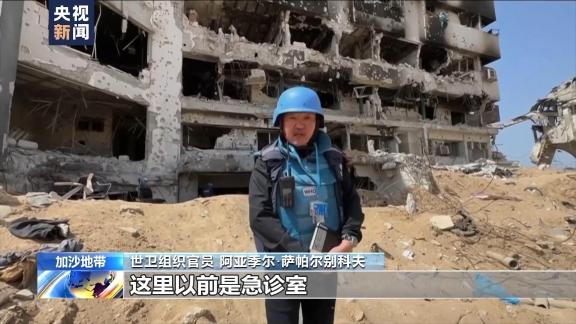 世卫官员 阿亚季尔·萨帕尔别科夫:在医院的院子里,你还能看到死去的人们的坟墓。有些人已经下葬,有些甚至还没有下葬,因此,你可以在这里,以及其他许多地方看到,在加沙地带烈日下腐烂的遗体。这太可怕了,简直无法想象,这场战争应该立即停止。