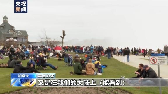 北京时间4月9日凌晨,今年全球唯一一次日全食上演。全食带扫过北美地区,墨西哥、美国和加拿大多个城市的天文爱好者都观赏到了此次日全食。 在本次日全食的最佳观赏点之一,美国和加拿大边境的尼亚加拉瀑布地区,大批游客聚集在一起,观赏日全食。