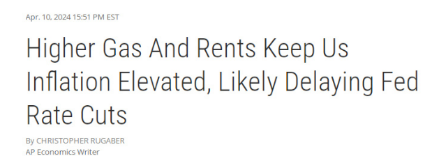美联社分析称,美国通胀数据再超预期,打击了美联储官员对于实现2%的通胀目标的信心,原定的降息计划可能会推迟到今年9月甚至明年。
