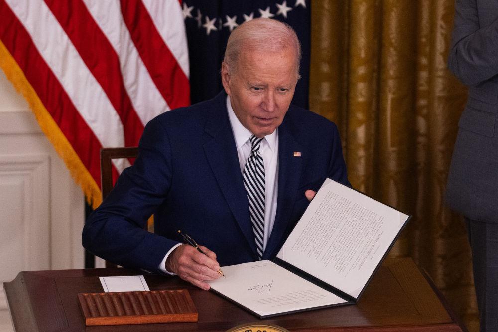 2023年10月30日,美国总统拜登在华盛顿白宫签署一份行政令。新华社发(亚伦摄)