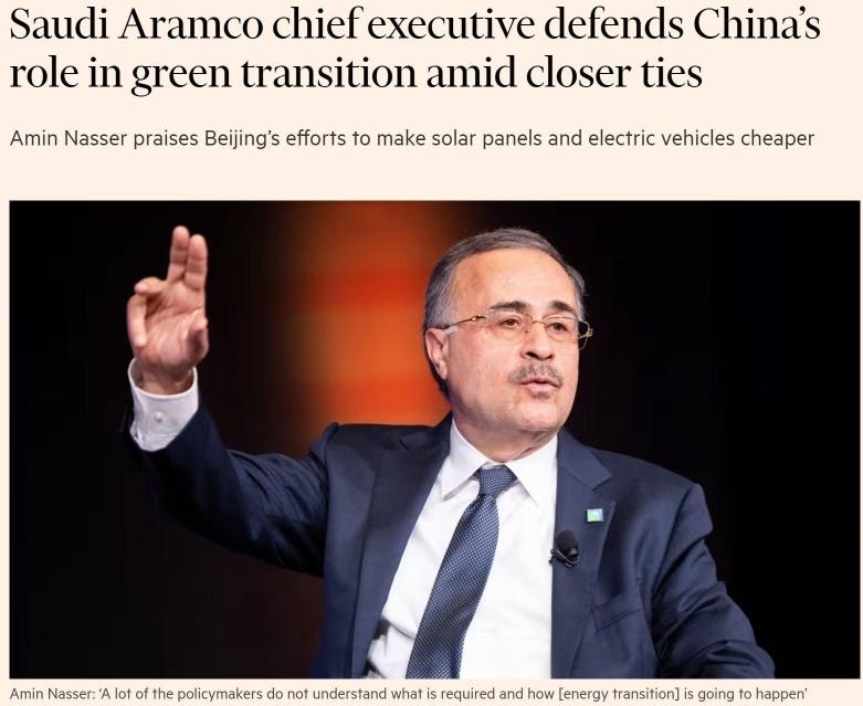 当地时间22日,在荷兰出席世界能源大会的沙特国家石油公司——“沙特阿美”首席执行官阿敏·纳赛尔称赞中国在支持全球实现净零碳排放目标方面所做的贡献。