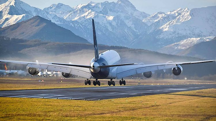 △塔布-卢尔德-比利牛斯机场,远处即是连绵的雪山。
