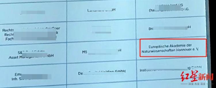 而最近引发关注的“欧洲自然科学院”(European Academy of Natural Sciences),中文译名与其仅两字之差,是一个总部设在德国汉诺威的机构。记者通过德国工商信息查询网站查到,该“学院”登记性质为“e.V.”,即“注册协会或社团”,和德国不少名字中带有“Academy”的机构一样,如“欧洲科学院”在慕尼黑的注册机构类型也是“e.V.”。