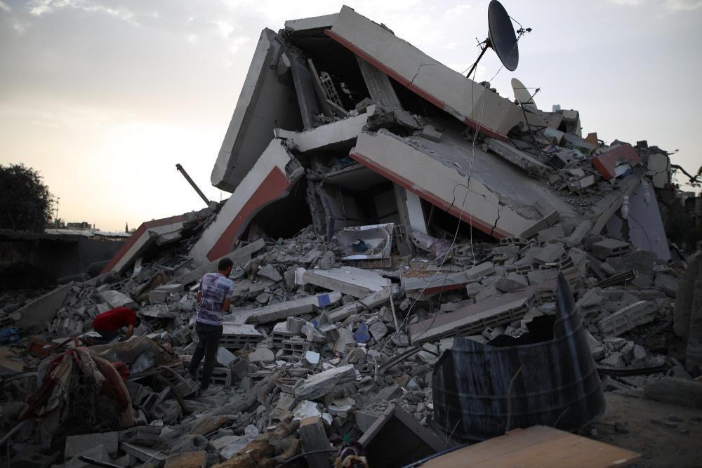 5月11日,在加沙地带中部迈加齐难民营,巴勒斯坦人查看以军轰炸后的废墟。新华社发