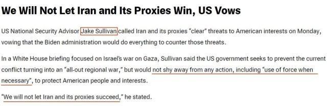 美总统国家安全事务助理沙利文13日在有关巴以冲突的白宫简报会上称,拜登政府寻求防止当前的巴以冲突演变为“全面的地区战争”,但为“保护美国利益”不会回避采取任何行动,包括“在必要时使用武力”。